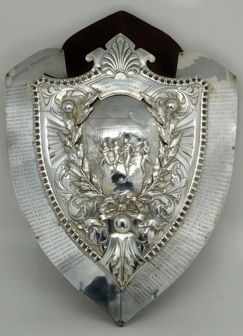 The Waterhouse Byrne Baird Shield was presented to Donore Harriers in 1896. by Messrs Waterhouse and Co Jewellers. The Shield was awarded to the winner of the 10 mile handicap race and was confined to club members only. The date fixed for the race was the 26th December. The race was originally held in a course in Meadowbrook Dundrum but since 1934 it has been held in the Phoenix Park. The course changed in the following years but in recent memory has consisted of 5 laps of a two mile course starting and finishing at the dog pond.